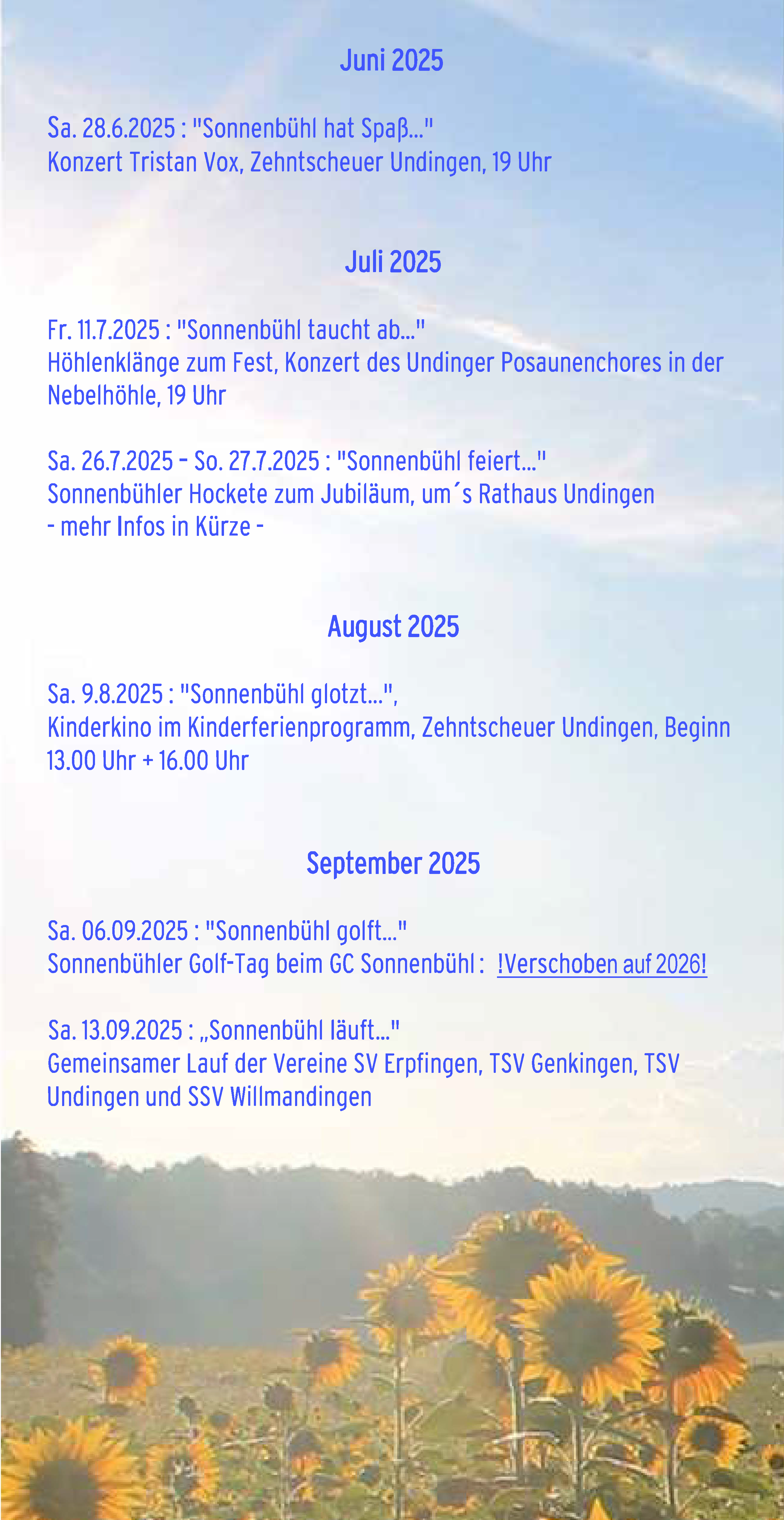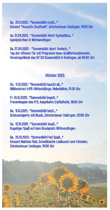 Jederzeit informieren auf sonnenbuehl-tourismus.de und/oder im Veranstaltungskalender!