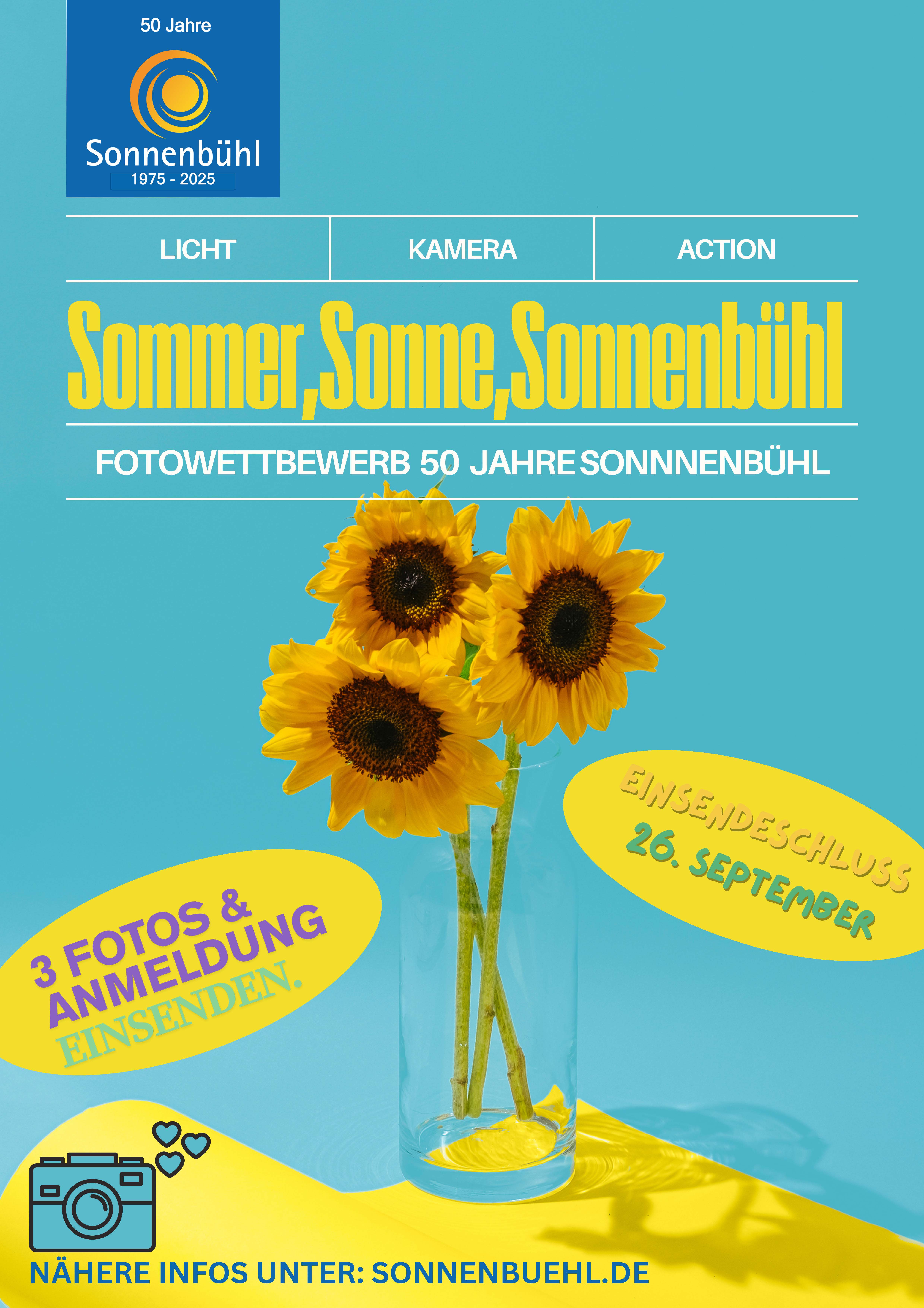 Wir freuen uns auf eure Einsendungen und darauf, gemeinsam mit euch 50 Jahre Sommer, Sonne und Sonnenbühl zu feiern!