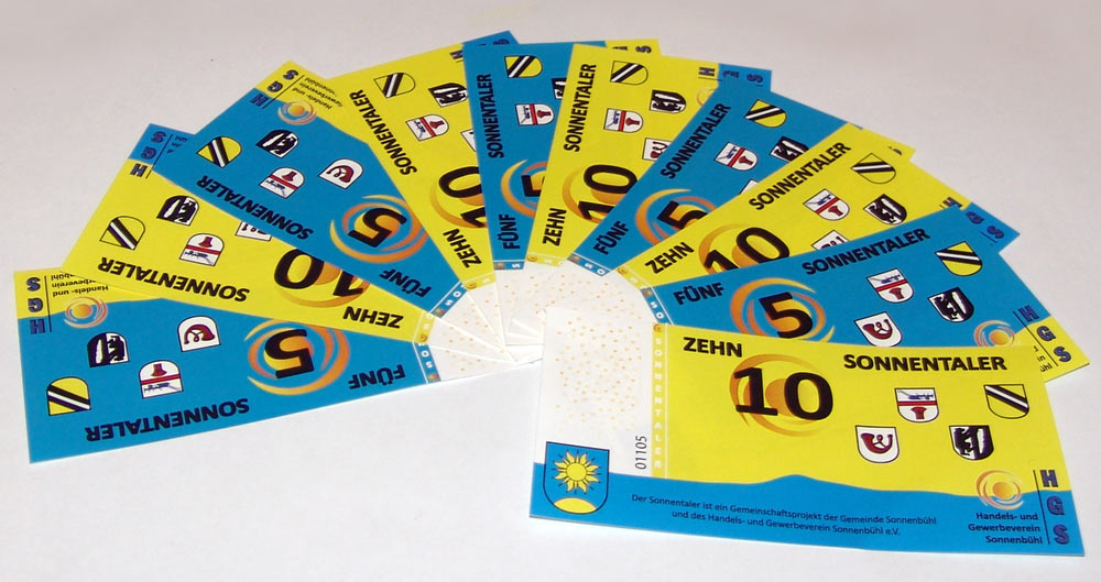 Der Sonnentaler ist ein Gemeinschaftsprojekt des Handels- und Gewerbeverein Sonnenbühl e. V. und der Gemeinde Sonnenbühl. Mit seinen vielseitigen Einsatzmöglichkeiten für alle denkbaren Anlässe, wie Geburtstagsgutschein, Ehrungen oder als Anerkennung bei besonderen Leistungen, soll der Sonnentaler einen Teil der Kaufkraft in Sonnenbühl halten und zu einer Stärkung der Sonnenbühler Identität beitragen.